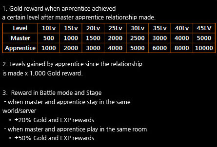 - Grundbelohnung : Sind Meister und Schüler im selben Server/Welt, erhalten beide +20% Gold und +20% EXP.